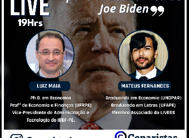 Os Cenaristas trouxeram pra o debate um dos temas mais importantes da atualidade, o Cenarista @luizmaiafilho Ph.D. em Economia, Prof de Economia e Finanças da UFRPE, Vice-Presidente de Administração e Tecnologia do IBEF-PE. , conversou com o Graduando em Economia @mateuschiaro e letras pela Universidade Federal do Agreste. Na ocasião o Cenarista @luizmaiafilho tratou sobre o que esperar da política econômica de Joe Biden , tema de altíssima relevância!