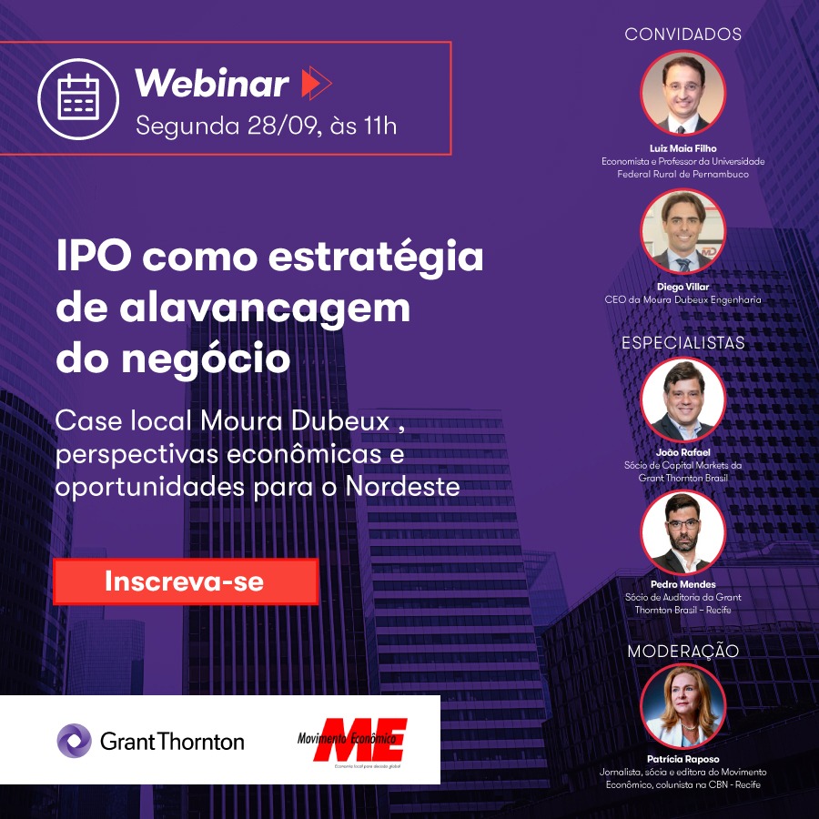 Assista à discussão dos nossos especialistas João Rafael e Pedro Mendes, e convidados Luiz Maia-Filho, economista e professor da Universidade Federal Rural de Pernambuco, e Diego Villar, CEO da Moura Dubeux Engenharia. Todo o debate foi mediado por Patricia Raposo, jornalista, sócia e editora do Movimento Econômico, colunista na CBN - Recife.