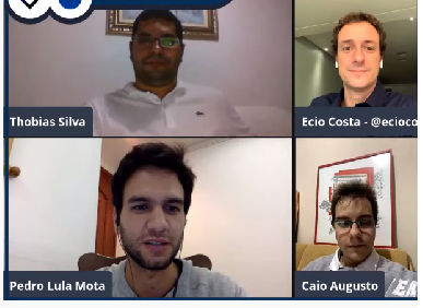 Os Terraceiros Caio Augusto e Pedro Lula Mota discutem com os Cenaristas Ecio Costa e Thobias Silva a respeito da economia no pós-pandemia